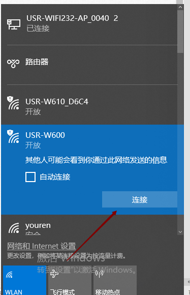 2. 電腦連接W600的wifi信號,會自動獲取一個10.10.100.xx的IP地址