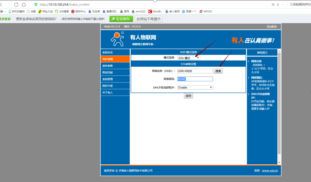 3. 用瀏覽器打開W600的IP地址(出廠默認(rèn)10.10.100.254),用戶名和密碼均是admin