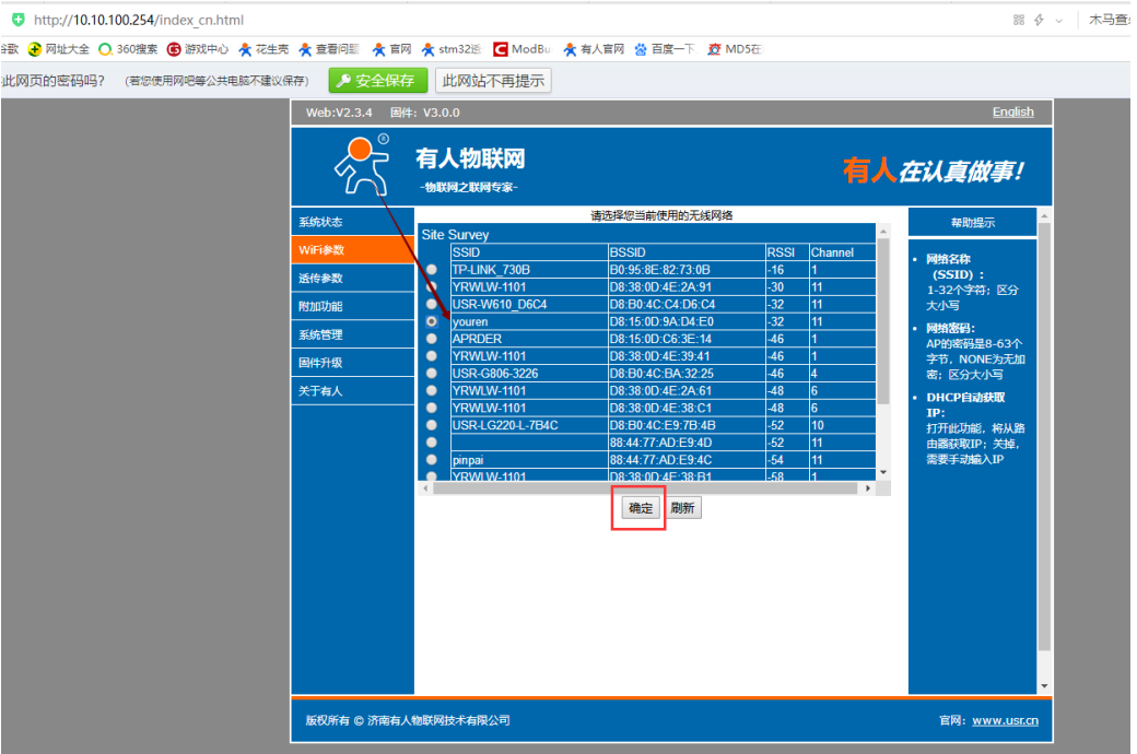 選定網(wǎng)絡(luò)后,確定;