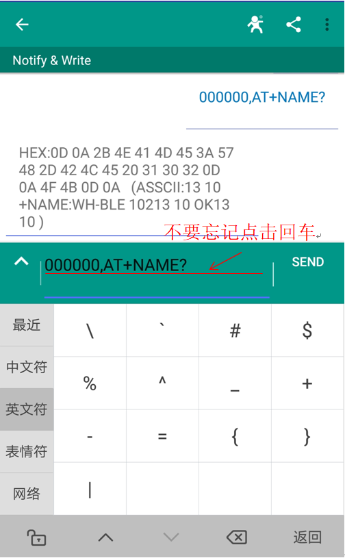 需要特別注意使用透傳指令時,所用到的符號全部為英文格式下的。