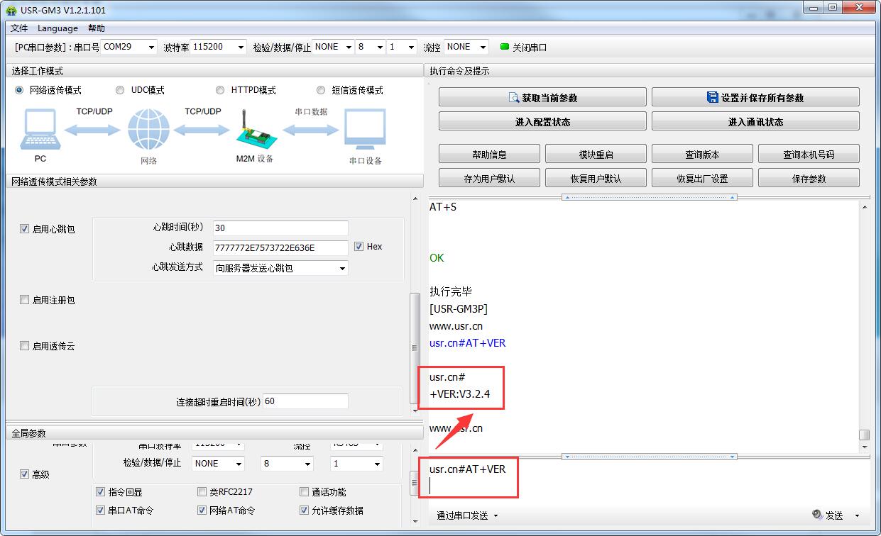 等待模塊重啟后,我們再發(fā)送剛才的查詢版本的指令,可以看到GM3P有回復固件版本號