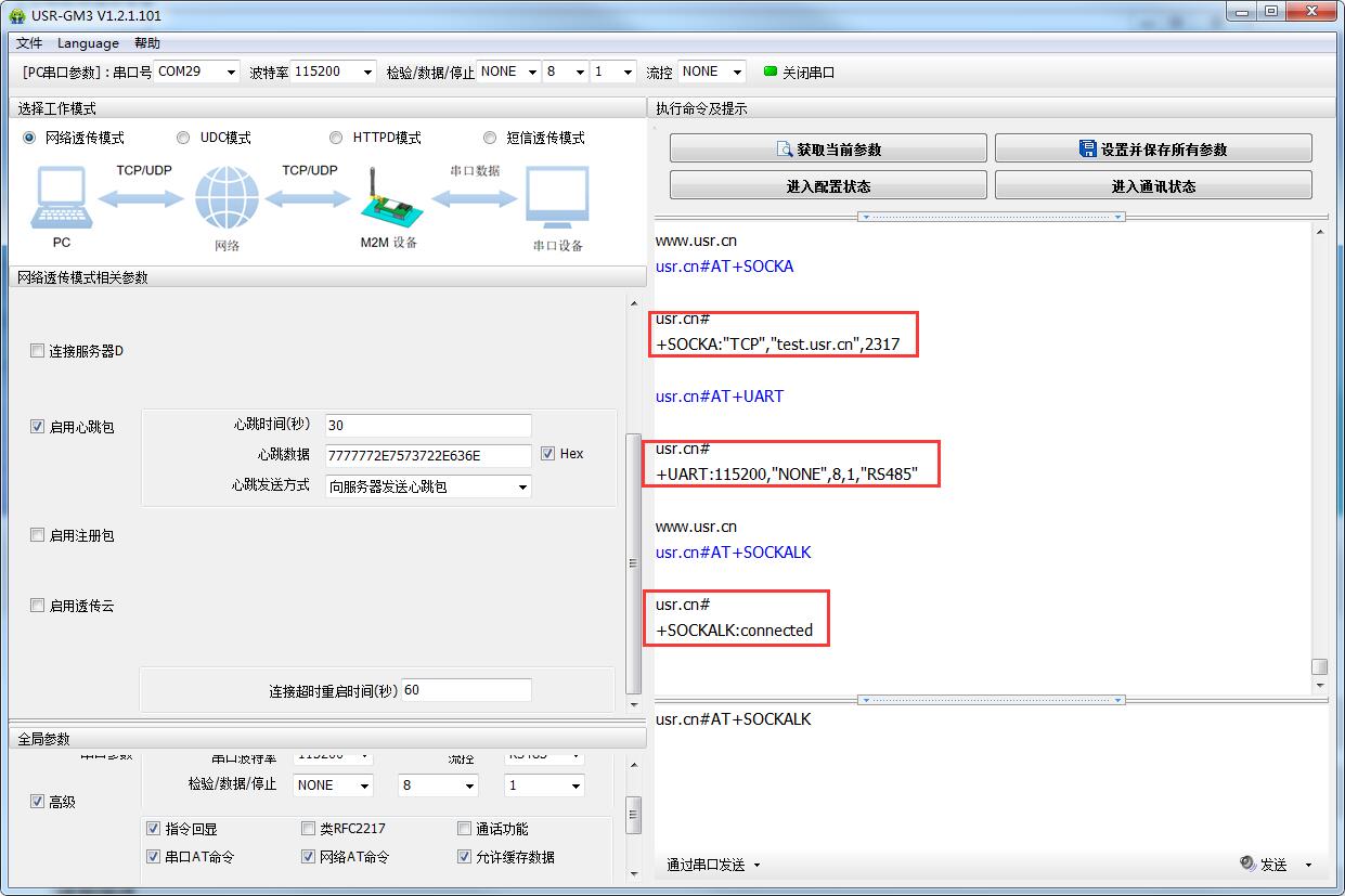 串口AT指令格式:密碼#AT指令,密碼出廠默認是usr.cn ,具體發(fā)送方法參考下面