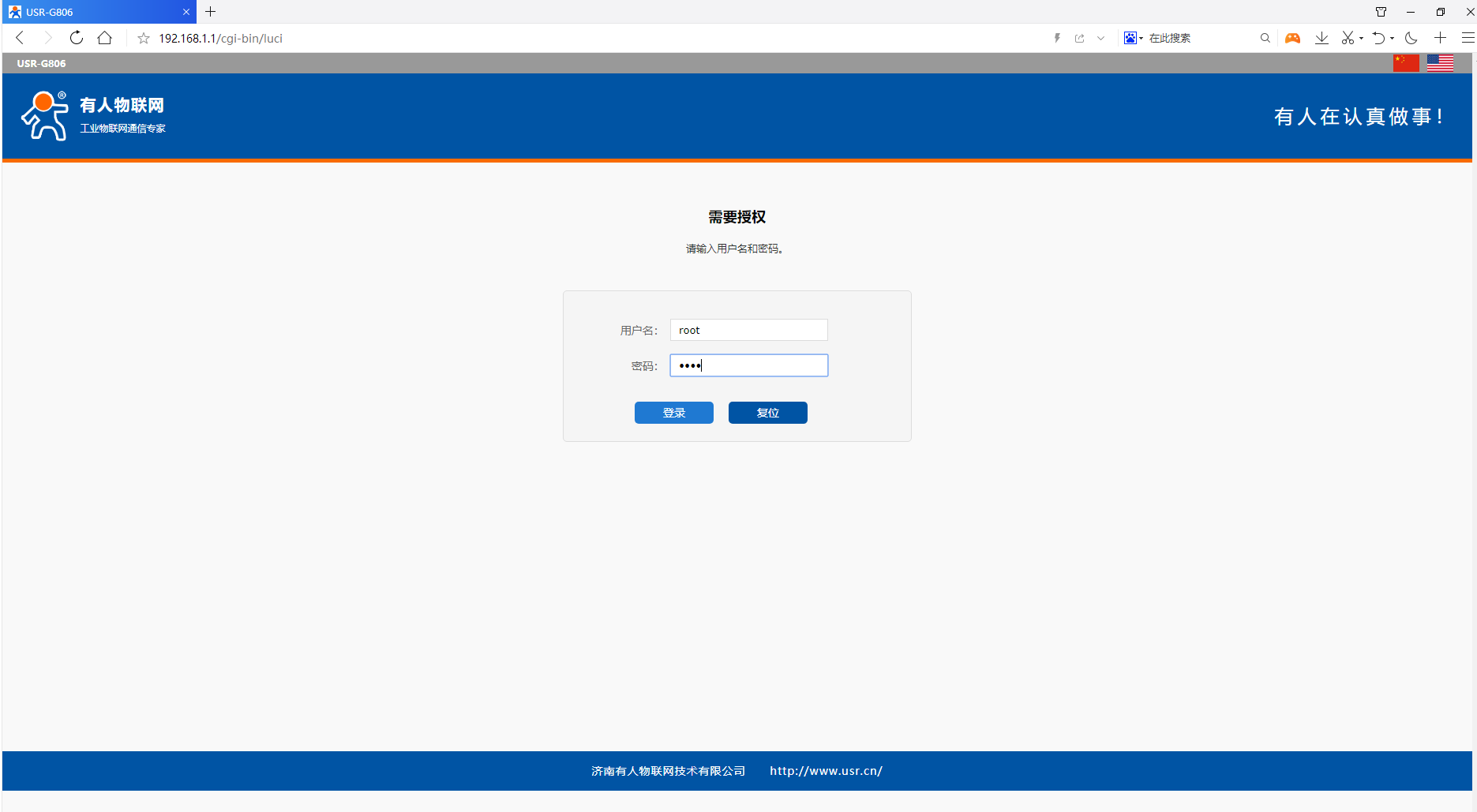 打開瀏覽器(不要用360瀏覽器),在地址欄輸入192.168.1.1,出廠默認(rèn)用戶名密碼為root