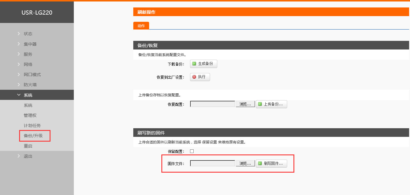點(diǎn)擊系統(tǒng),選擇備份/升級(jí),選擇固件文件,確定后點(diǎn)擊刷寫固件。