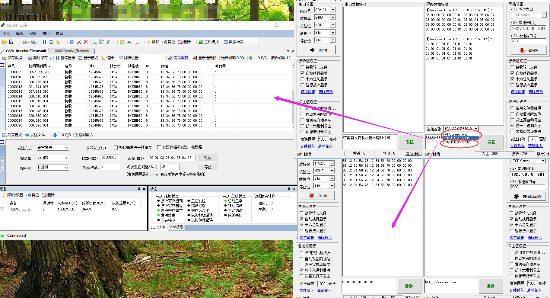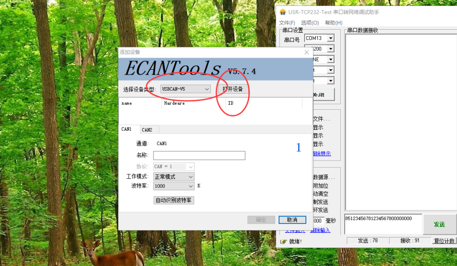 4. 通過(guò)Can轉(zhuǎn)USB鏈接設(shè)備和電腦。