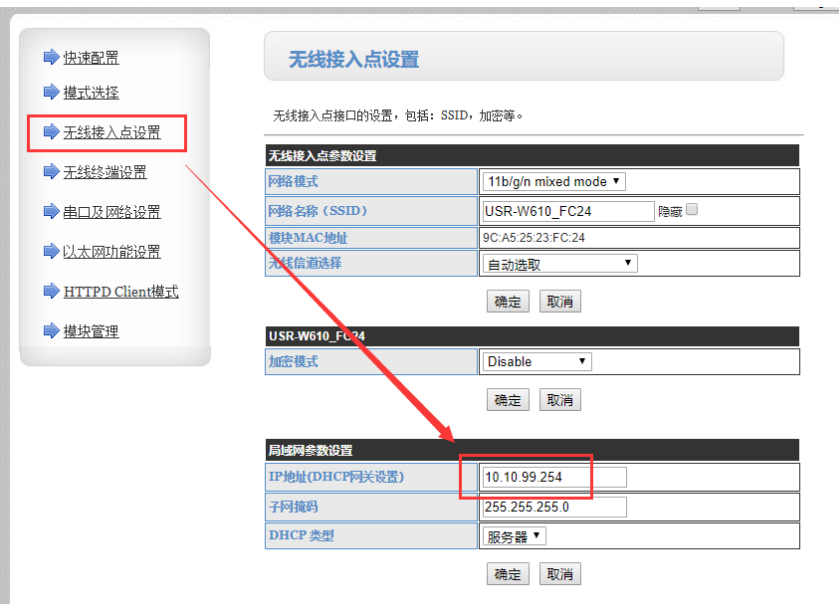 b.注意:需要進(jìn)行LAN IP 的更改,建議從10.10.99.254-10.10.98.254