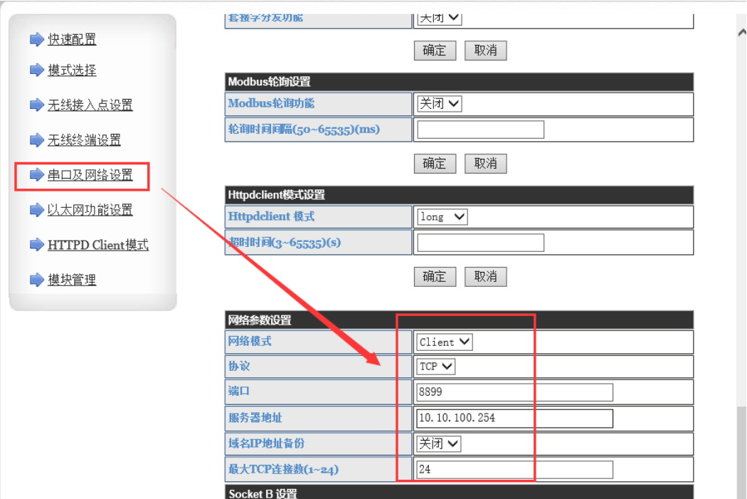 2、TCP client的設(shè)置