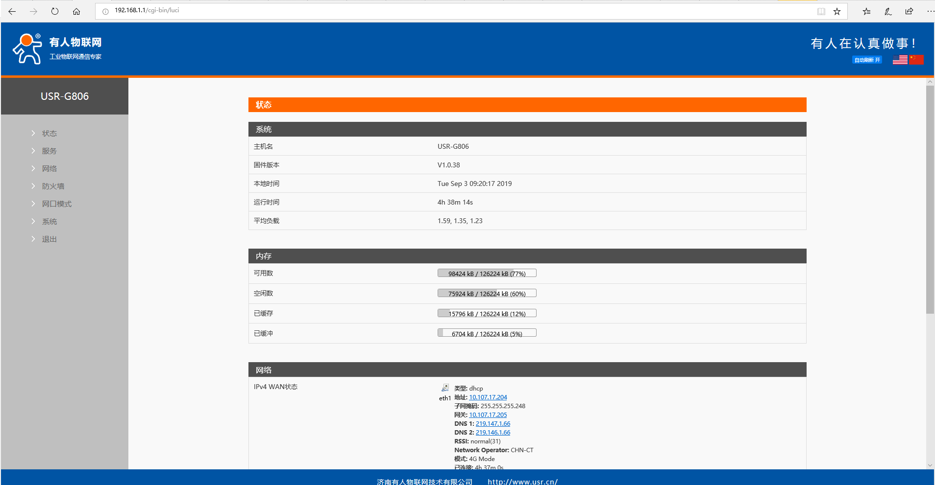 5、 上電之后,觀察指示燈:PWR常亮、LAN 閃爍、4G 燈(3G+2G 燈)點(diǎn)亮、信號(hào)燈全亮代表信號(hào)良好