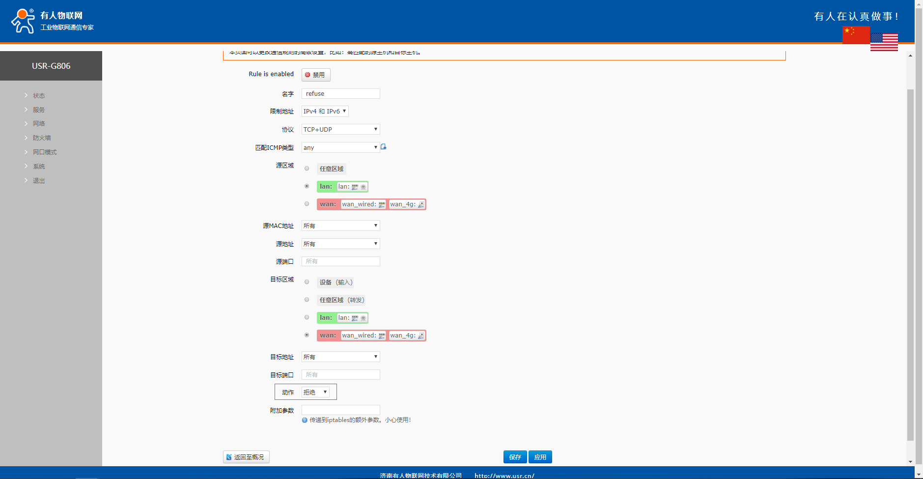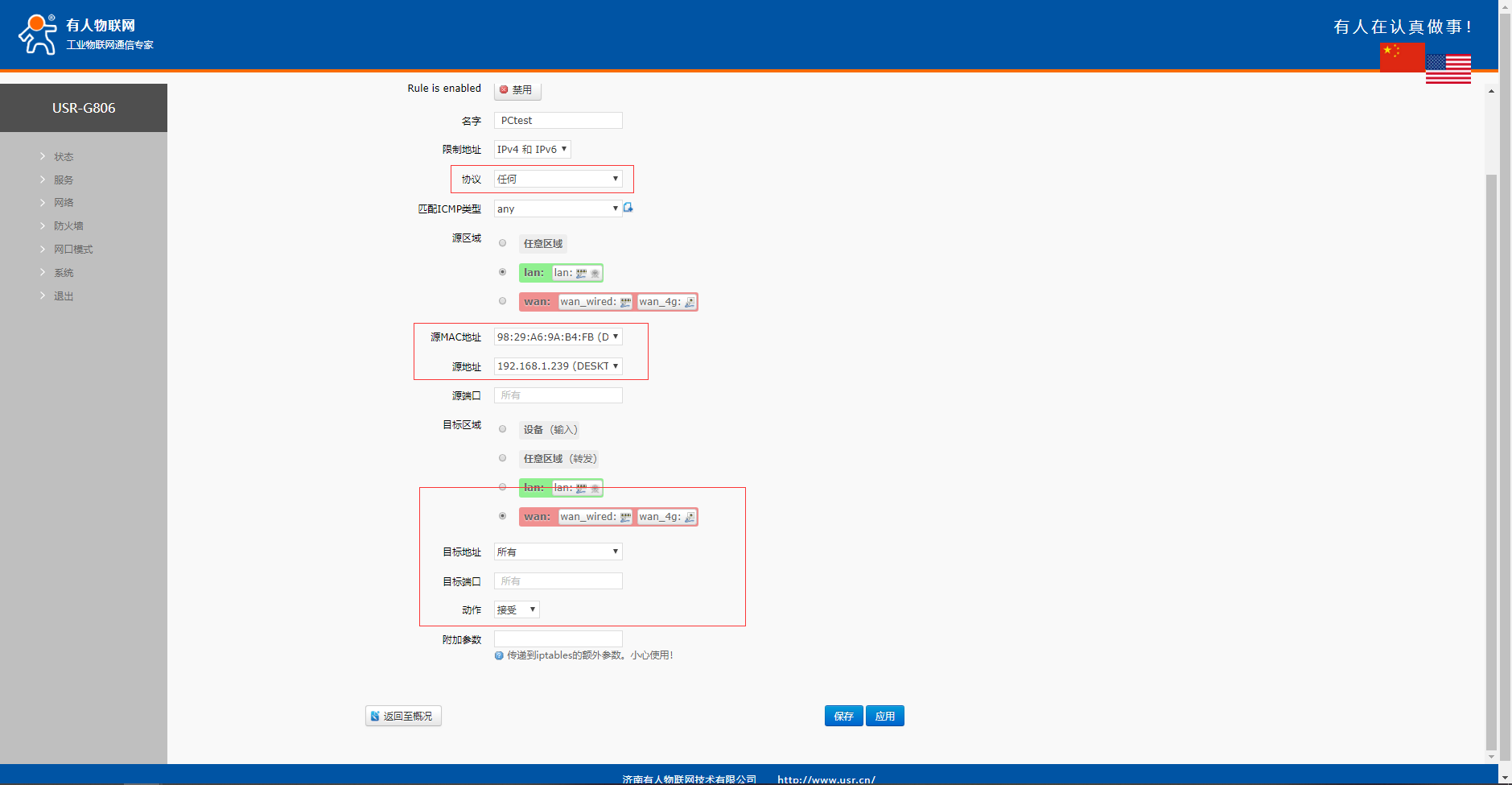 兩條規(guī)則添加好之后點(diǎn)擊保存應(yīng)用,然后重啟設(shè)備
