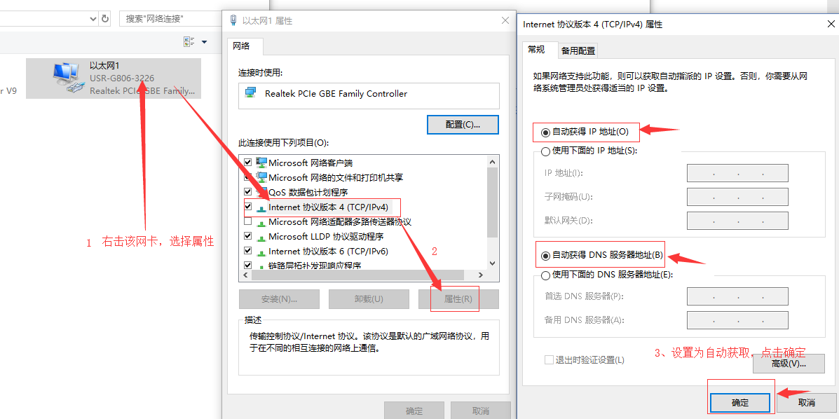1、電腦配置網(wǎng)卡,選擇自動(dòng)獲取IP地址