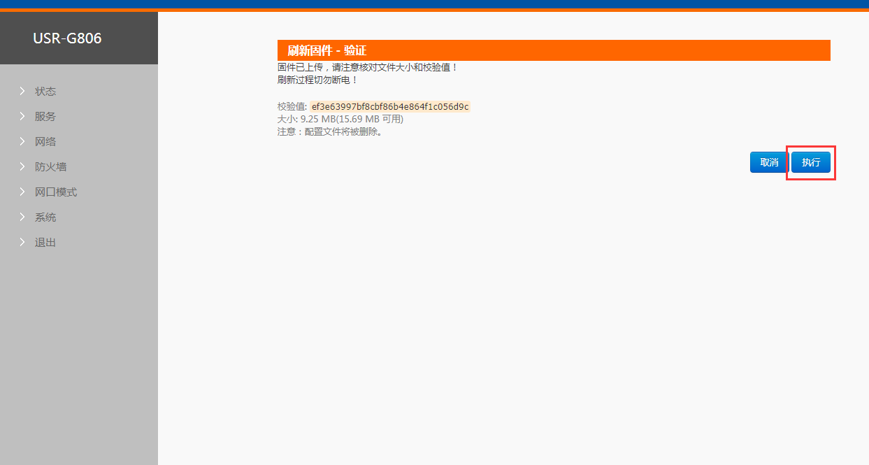 選擇要升級的固件文件(如需升級,請?jiān)诳蛻糁С种行奶峤还危瑐渥?dāng)前固件版本,技術(shù)支持會將固件以郵件的形式發(fā)送)。