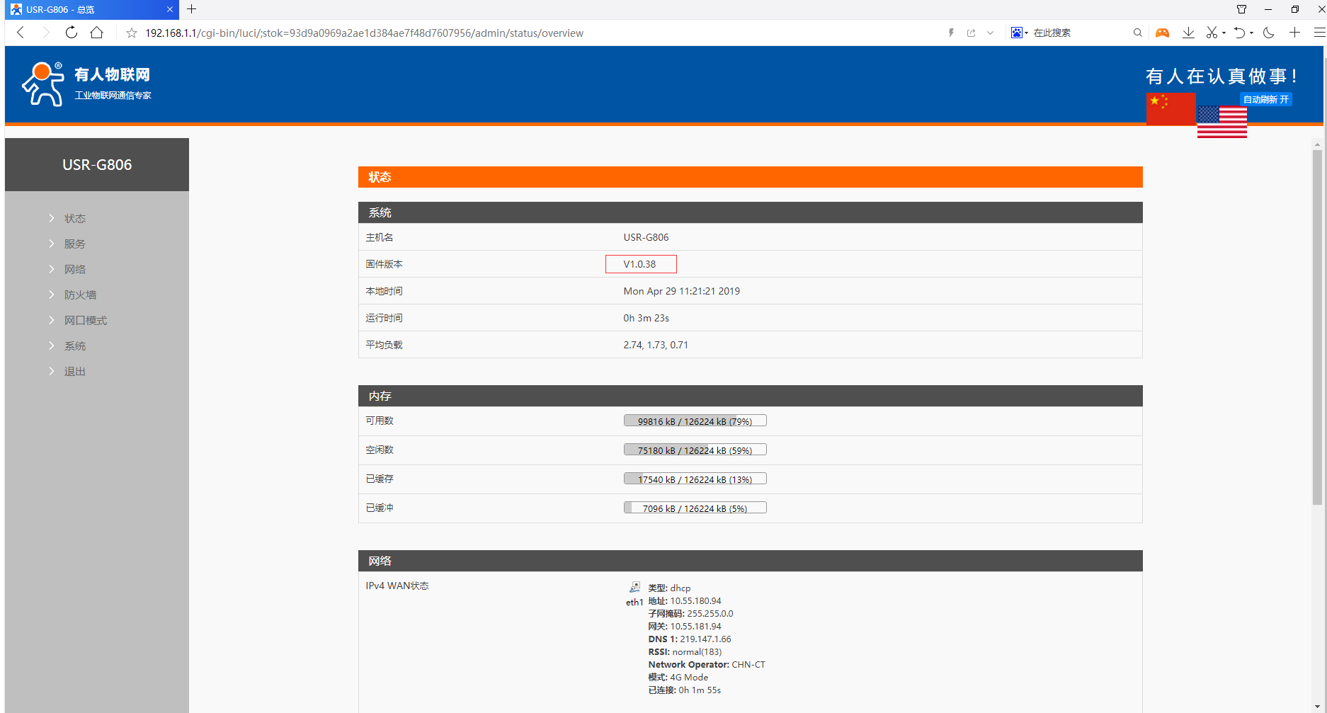 等待大約2分鐘,重新登錄界面,查看版本號,已經(jīng)升級到V1.0.38。