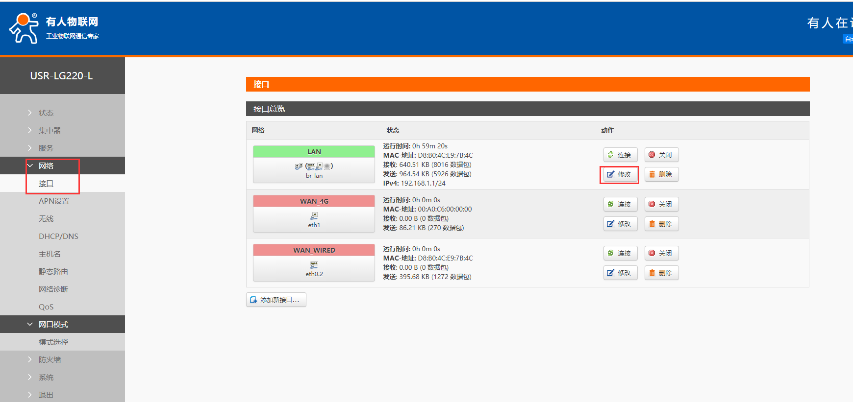 4、如果需要修改IP地址在網(wǎng)絡(luò)接口,LAN位置進行修改