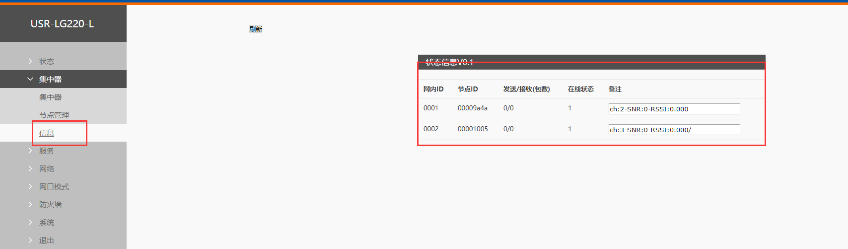 9、重啟完畢登陸集中器在集中器—信息 可參看加入的節(jié)點信息,串口助手會顯示連接對象ip與端口號。