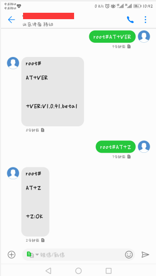 編輯短信 root#AT+COMMAND 到 SIM,其中root是命令密碼, COMMAND 是 AT 指令的具體指令,發(fā)送具體格式如圖:
