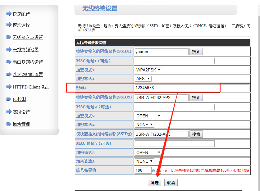 13、進(jìn)入無(wú)線終端設(shè)置,搜索要連接的WiFi,選中以后點(diǎn)擊確定,輸入密碼,設(shè)置完成后同樣需要點(diǎn)擊確定