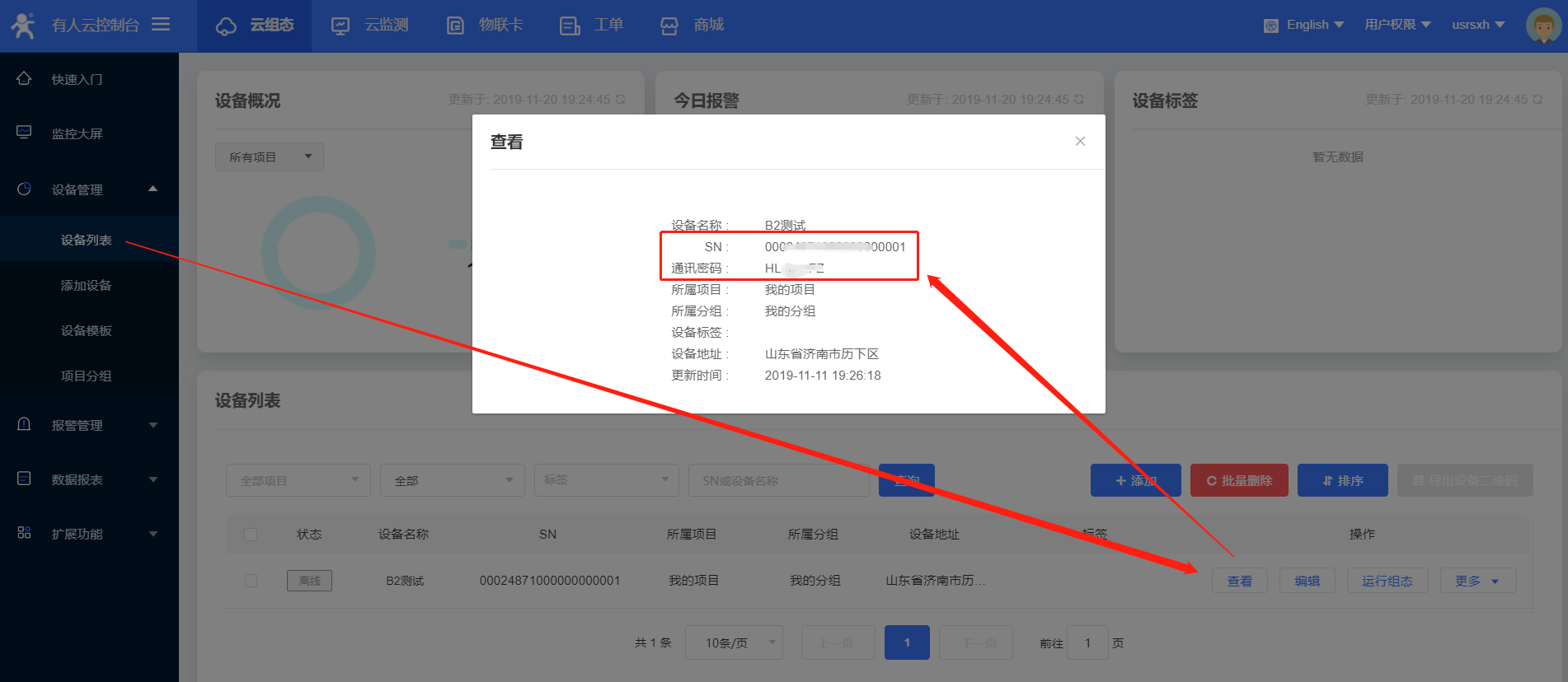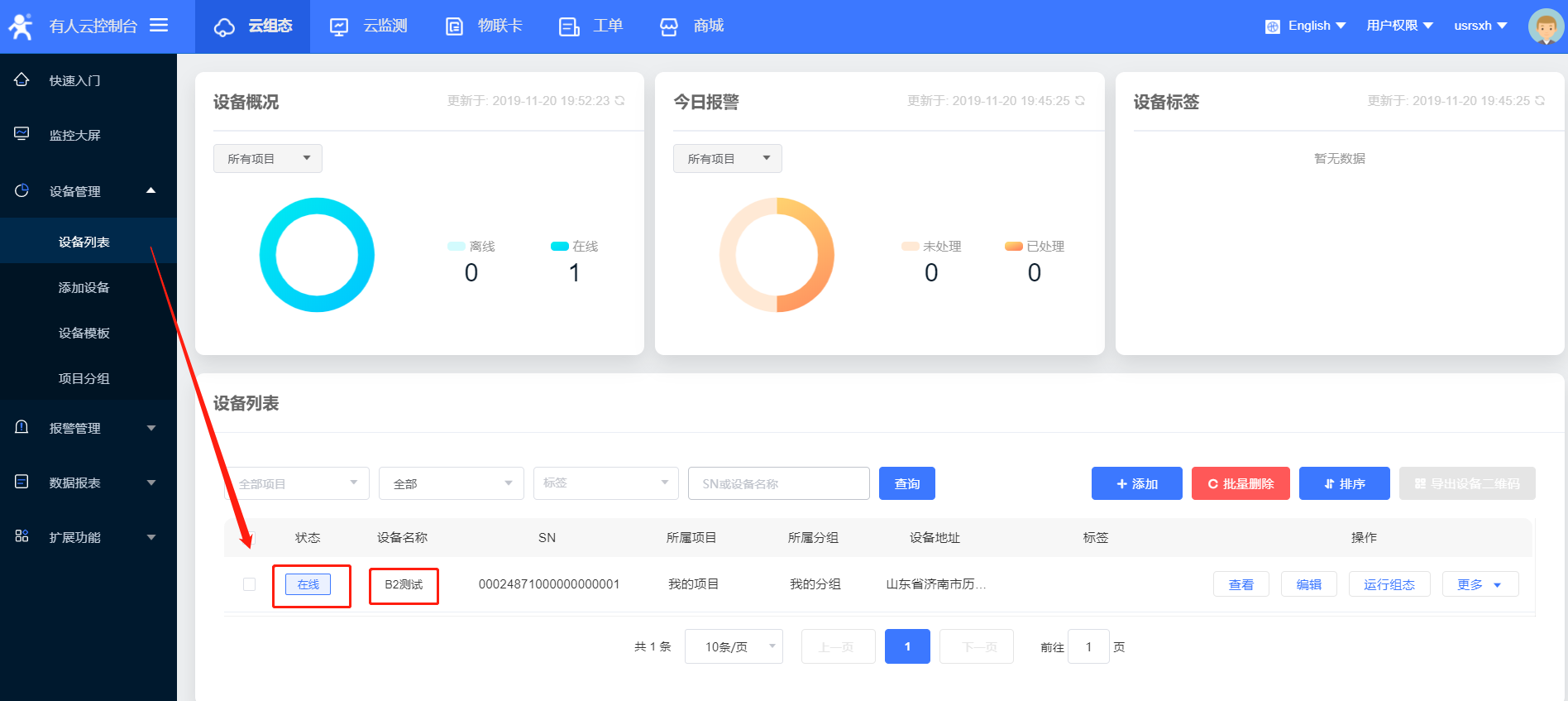 17、設(shè)置完所有的參數(shù)要重啟設(shè)備,稍等一會(huì),在有人云界面,您會(huì)看到設(shè)備已經(jīng)上線