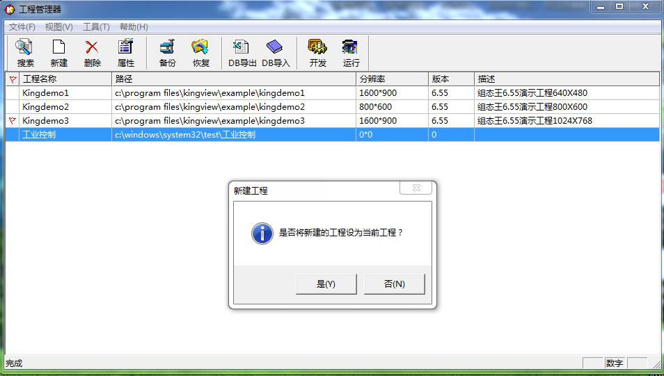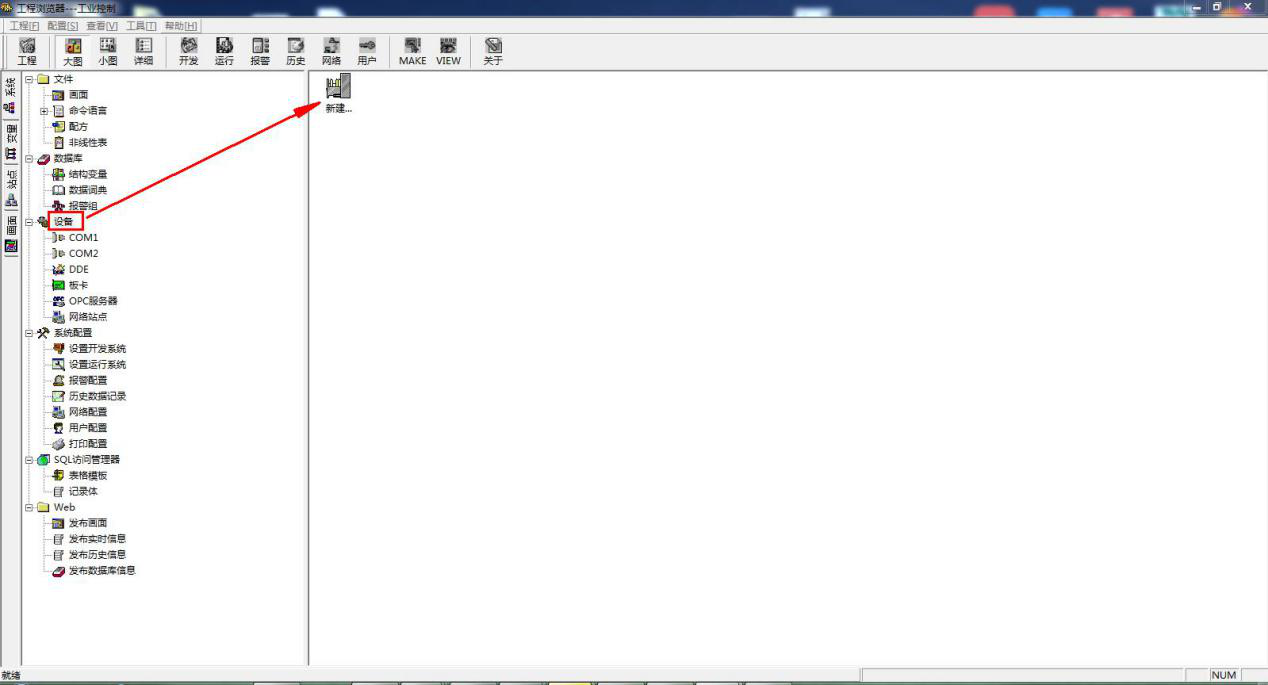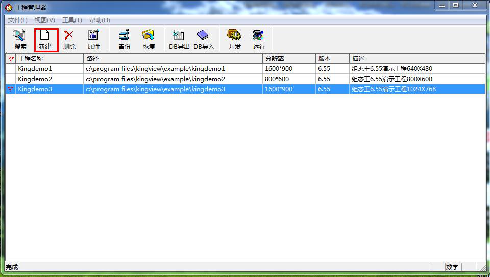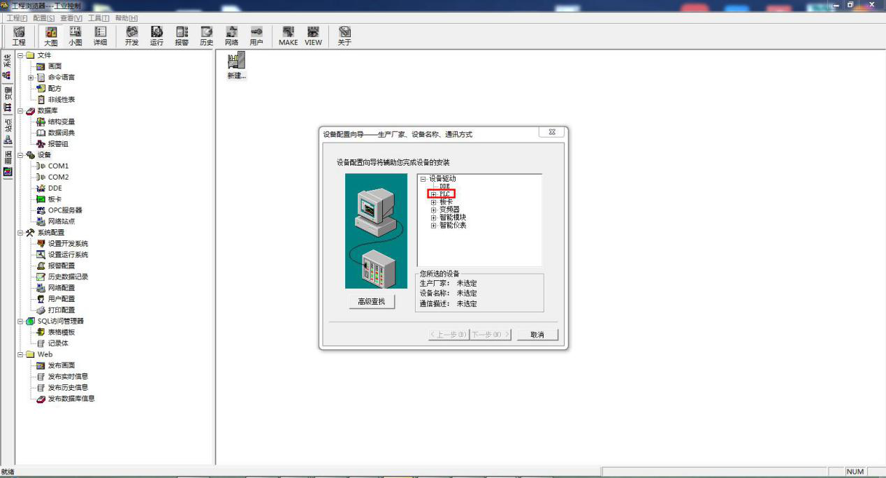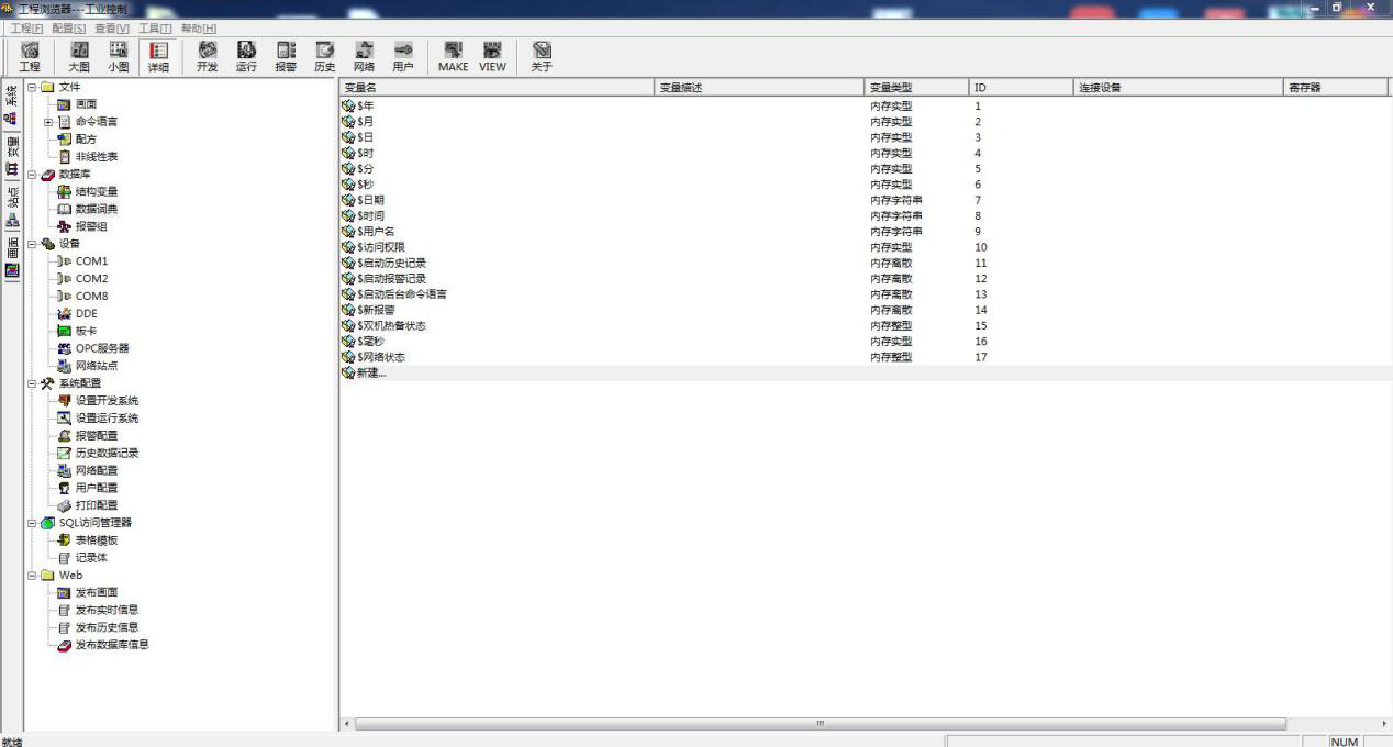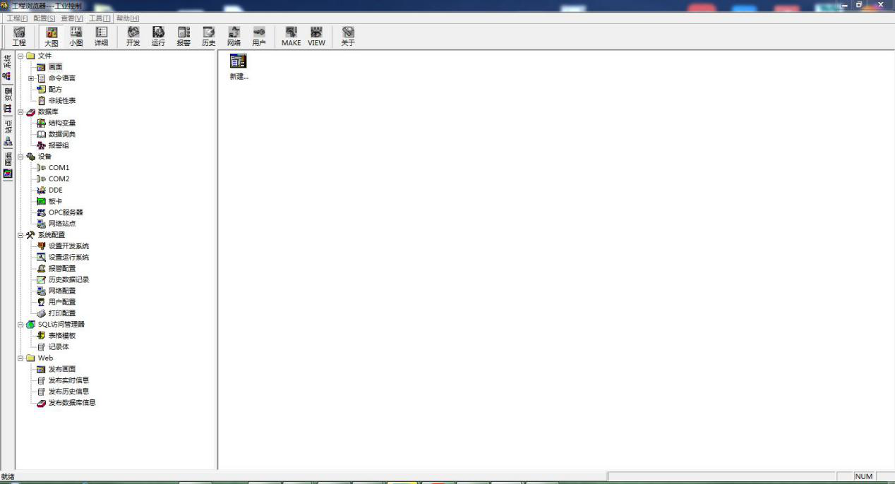 組態(tài)軟件編程部分。新建一個(gè)工程,然后點(diǎn)擊開發(fā)。