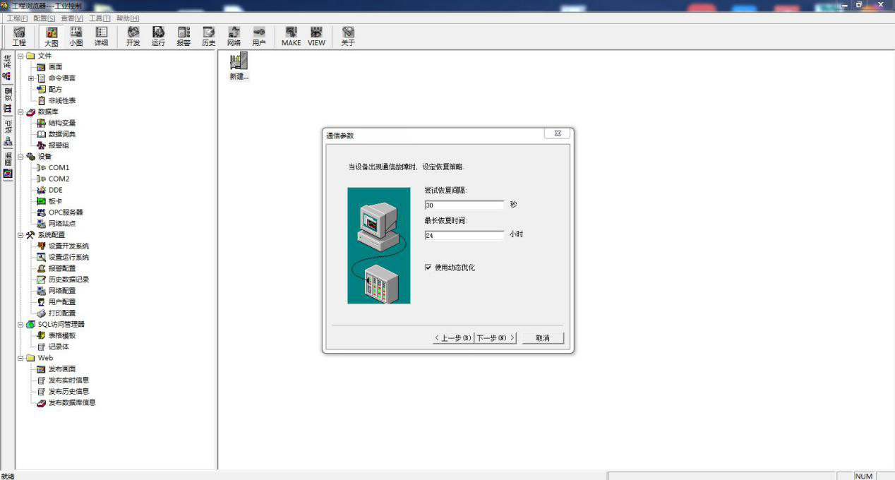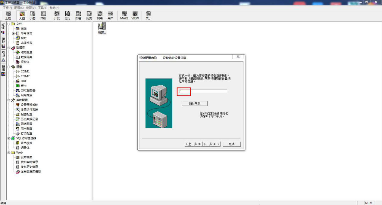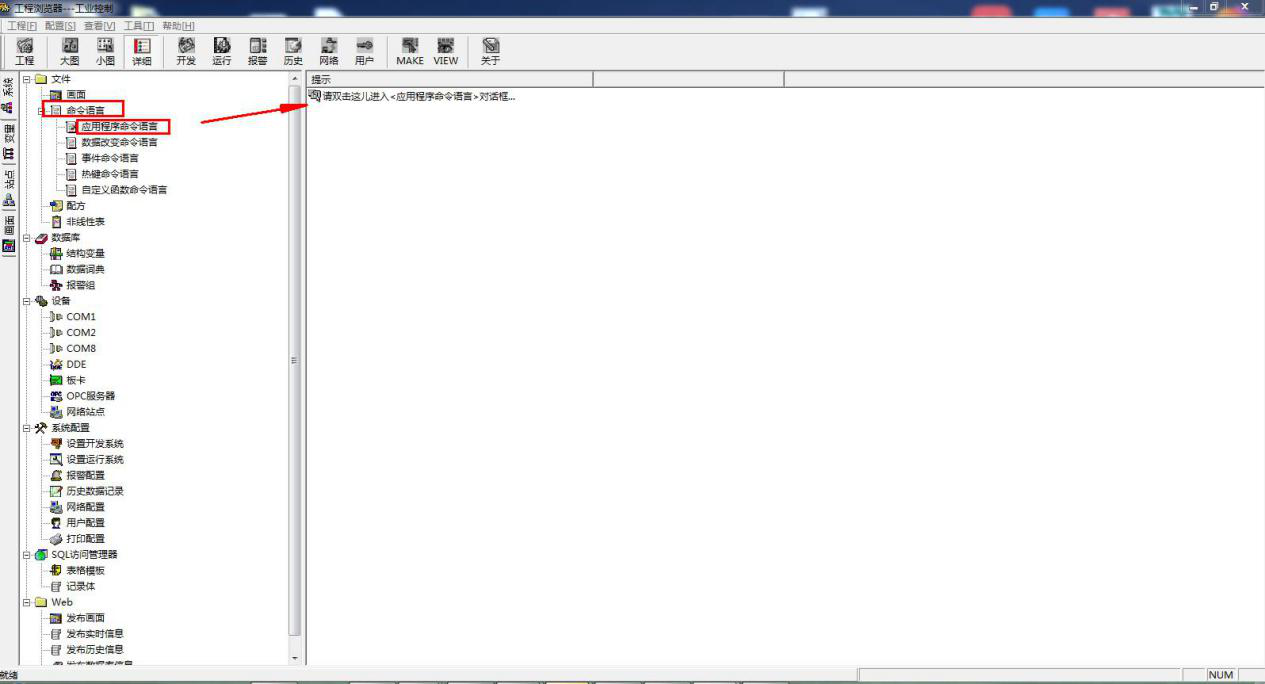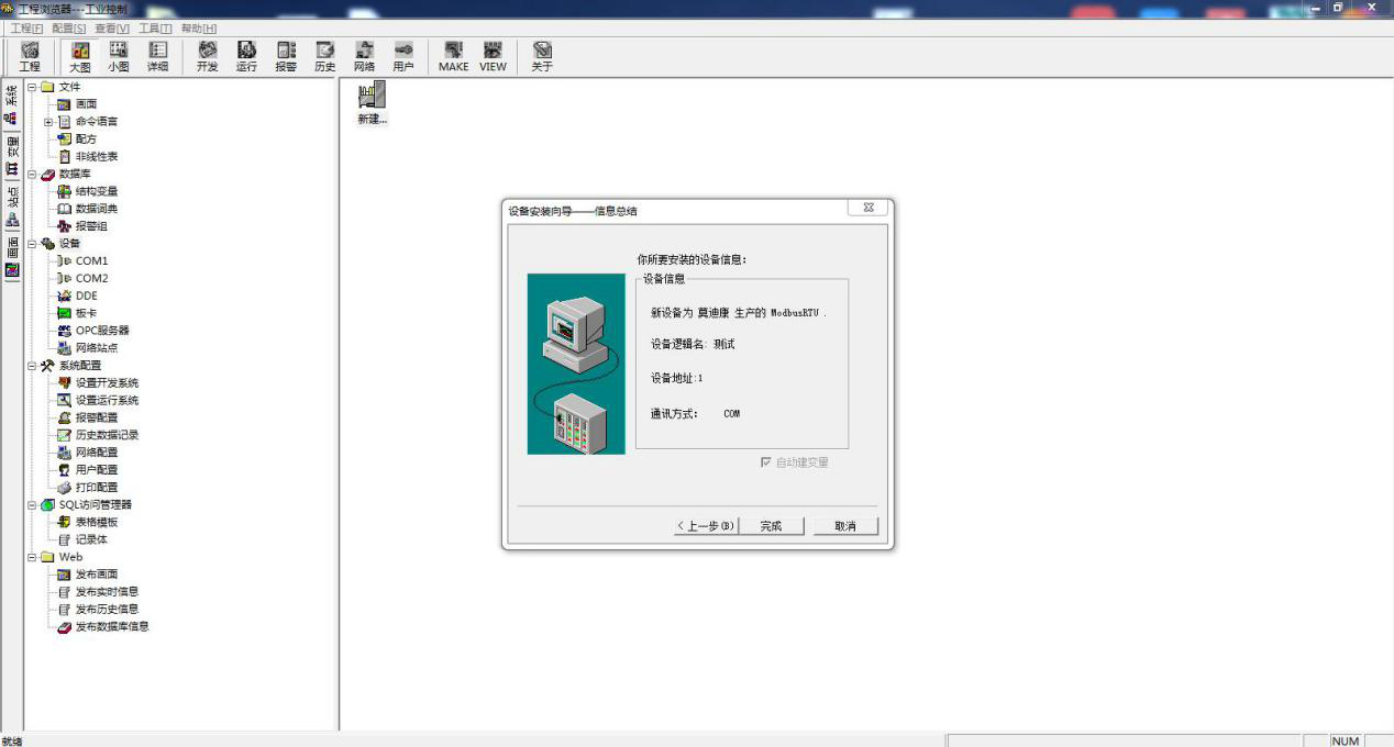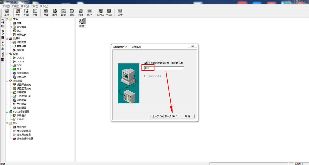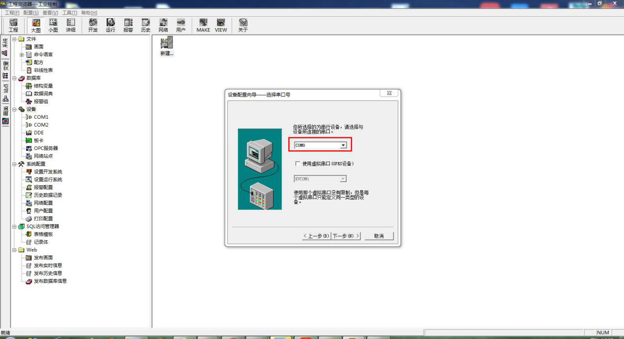 組態(tài)軟件編程部分。新建一個(gè)工程,然后點(diǎn)擊開發(fā)。