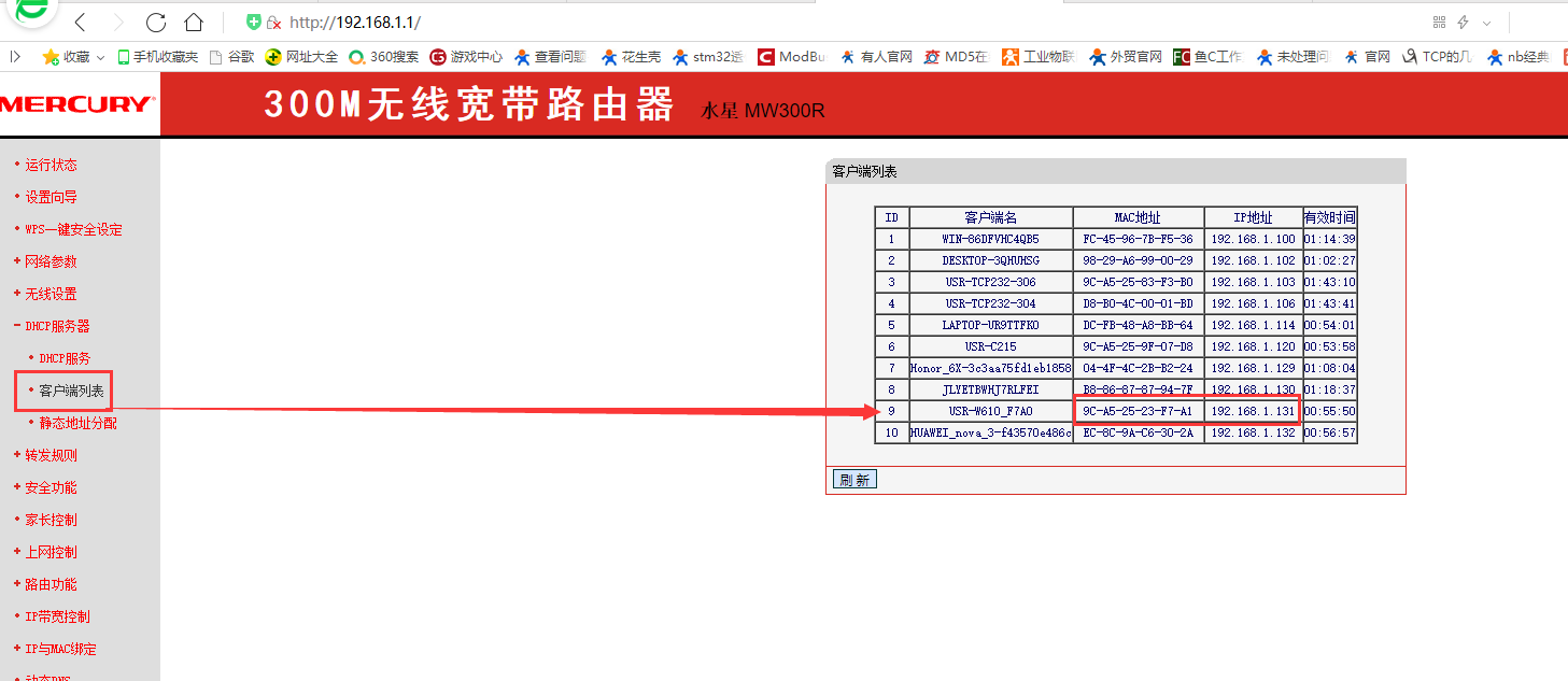 9、登進(jìn)路由器的內(nèi)置網(wǎng)頁可以看到此時(shí)路由器分配給W610的ip是192.168.1.131