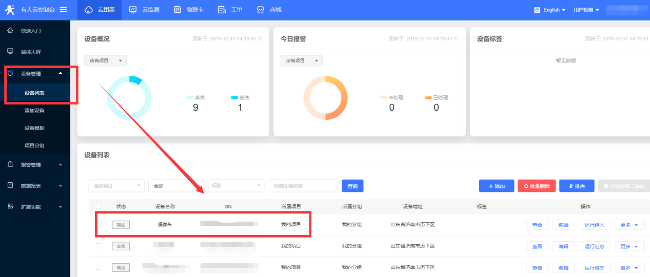 4、保存后在設(shè)備管理,設(shè)備列表可看見新添加的設(shè)備