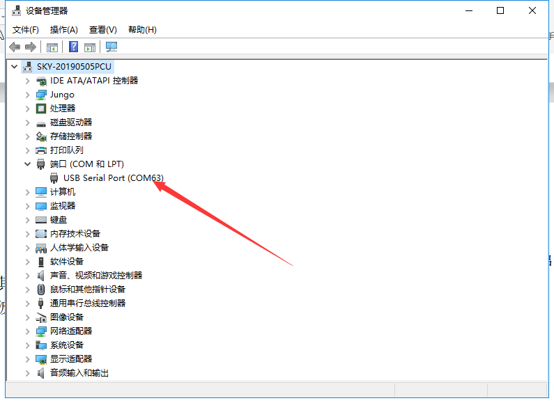 其中串口號可以在電腦的“設(shè)備管理器”中查看,見下圖;