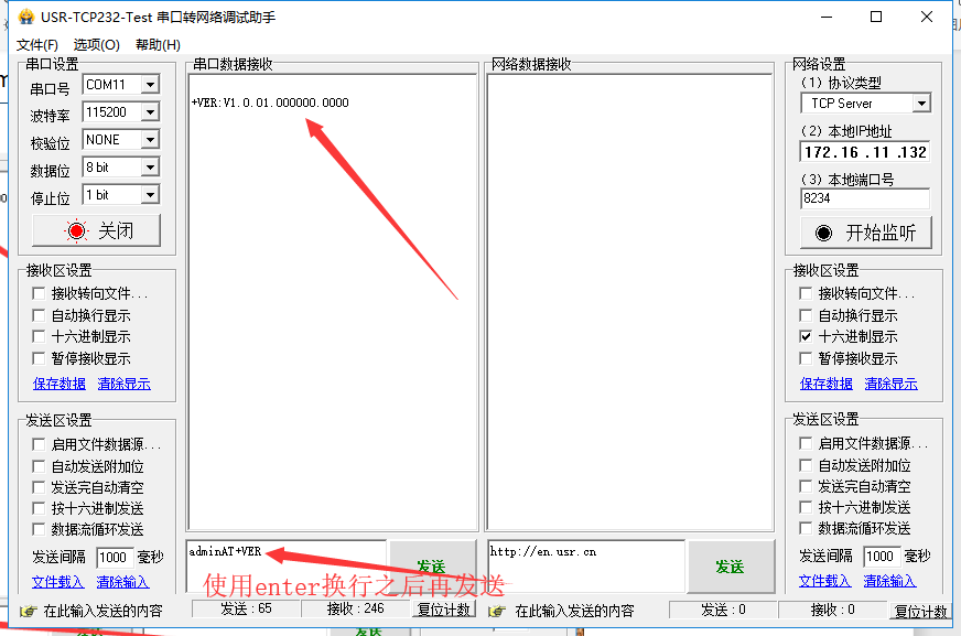 例如查詢776的固版本:adminAT+VER,發(fā)送時使用enter換行之后再發(fā)送。