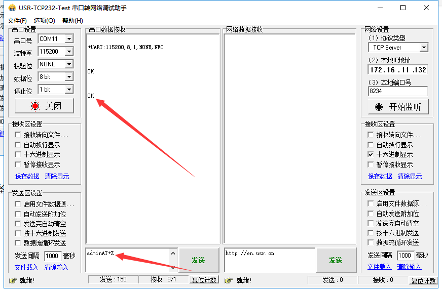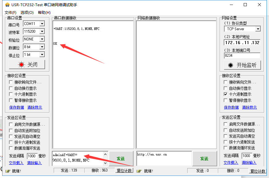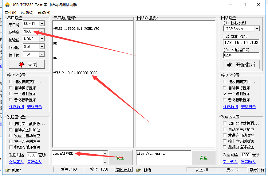 2. 使用修改串口參數(shù)指令修改波特率為9600
