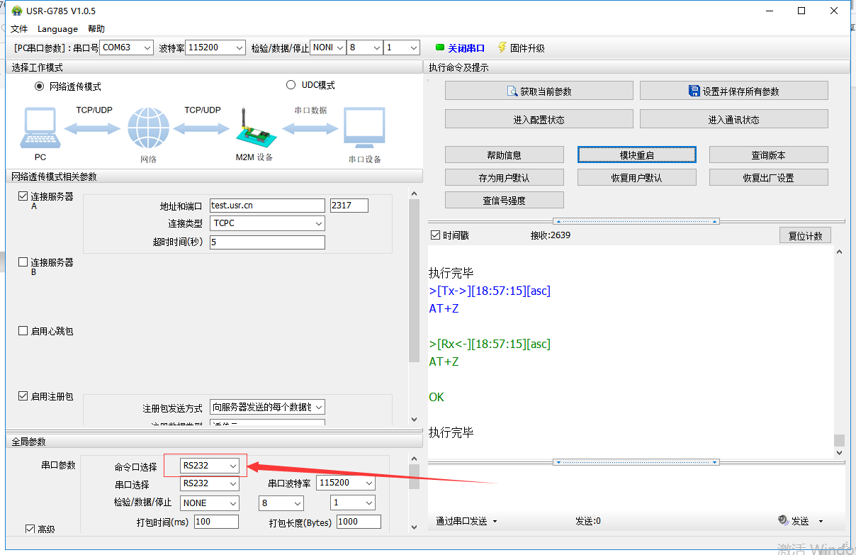 注意:因為USR-G785的串口是端子接口的,232的九針或者九孔的串口線需要通過導(dǎo)線轉(zhuǎn)接一下