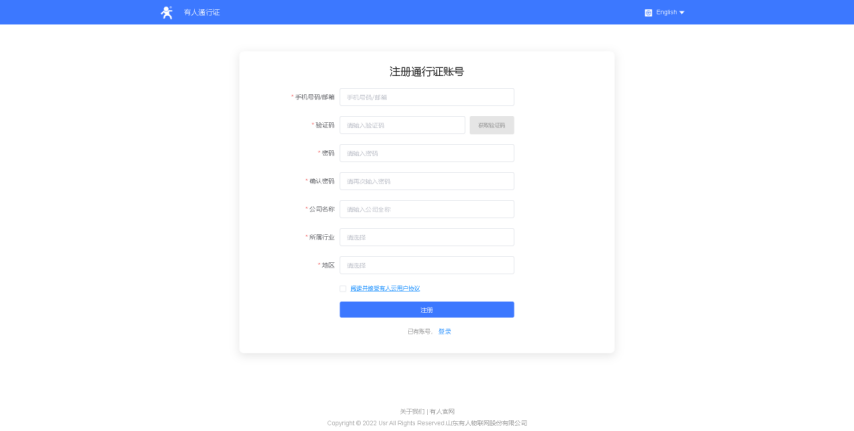 5、打開有人云網(wǎng)頁:http://cloud.usr.cn/ 點擊右上角注冊,根據(jù)主賬號中填寫的手機號或者郵箱給子賬號注冊有人云通行證。