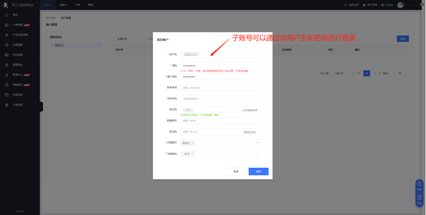 6、使用子賬號通行證登陸后可以在有人云控制臺看到主賬號分配的權(quán)限。