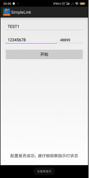 (4) 打開Simplelink APP,輸入wifi密碼端口號:48899,拉低模塊 Reload 引腳 1-3 秒,則模塊進入 Simplelink 配置,模塊不斷檢測接收的數(shù)據(jù)包,成功解析出接收到廣播包的 SSID 和密碼后,模塊主動去連接 AP。