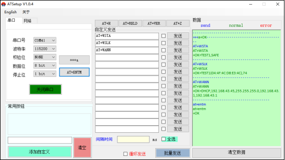 (5) 手機使用小紅人軟件打開串口,模塊默認串口參數(shù)為: 波特率 115200、無校驗、8 位數(shù)據(jù)位、1 位停止位。點擊“+++a”,會返回+ok,說明已經(jīng)進入命令行模式。