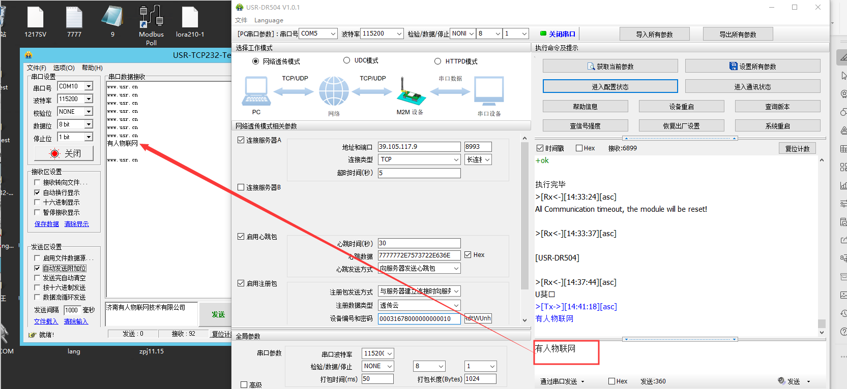 2、504串口通過(guò)USB轉(zhuǎn)485接到電腦端,裝上sim卡,接上天線(xiàn),上電。