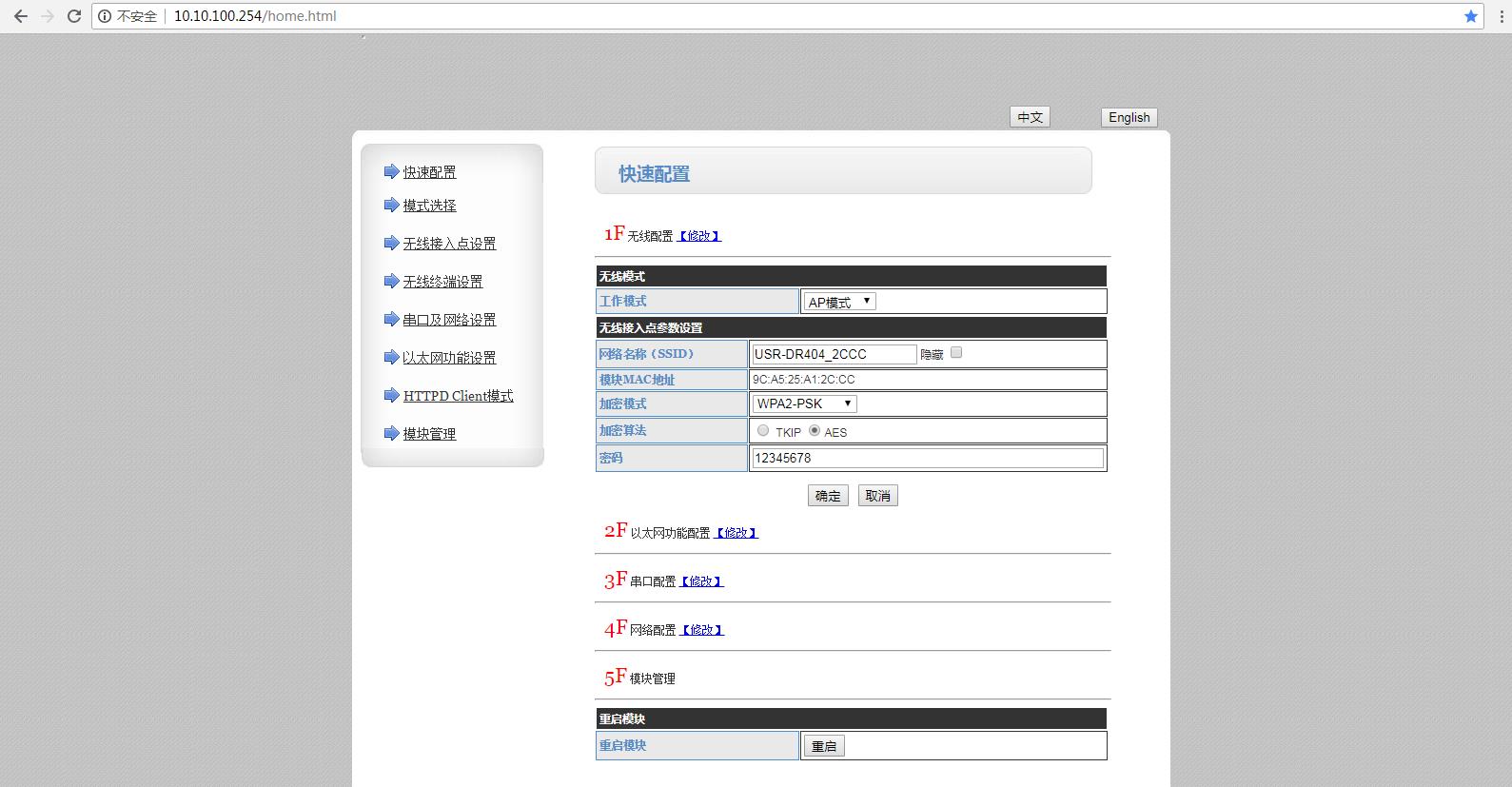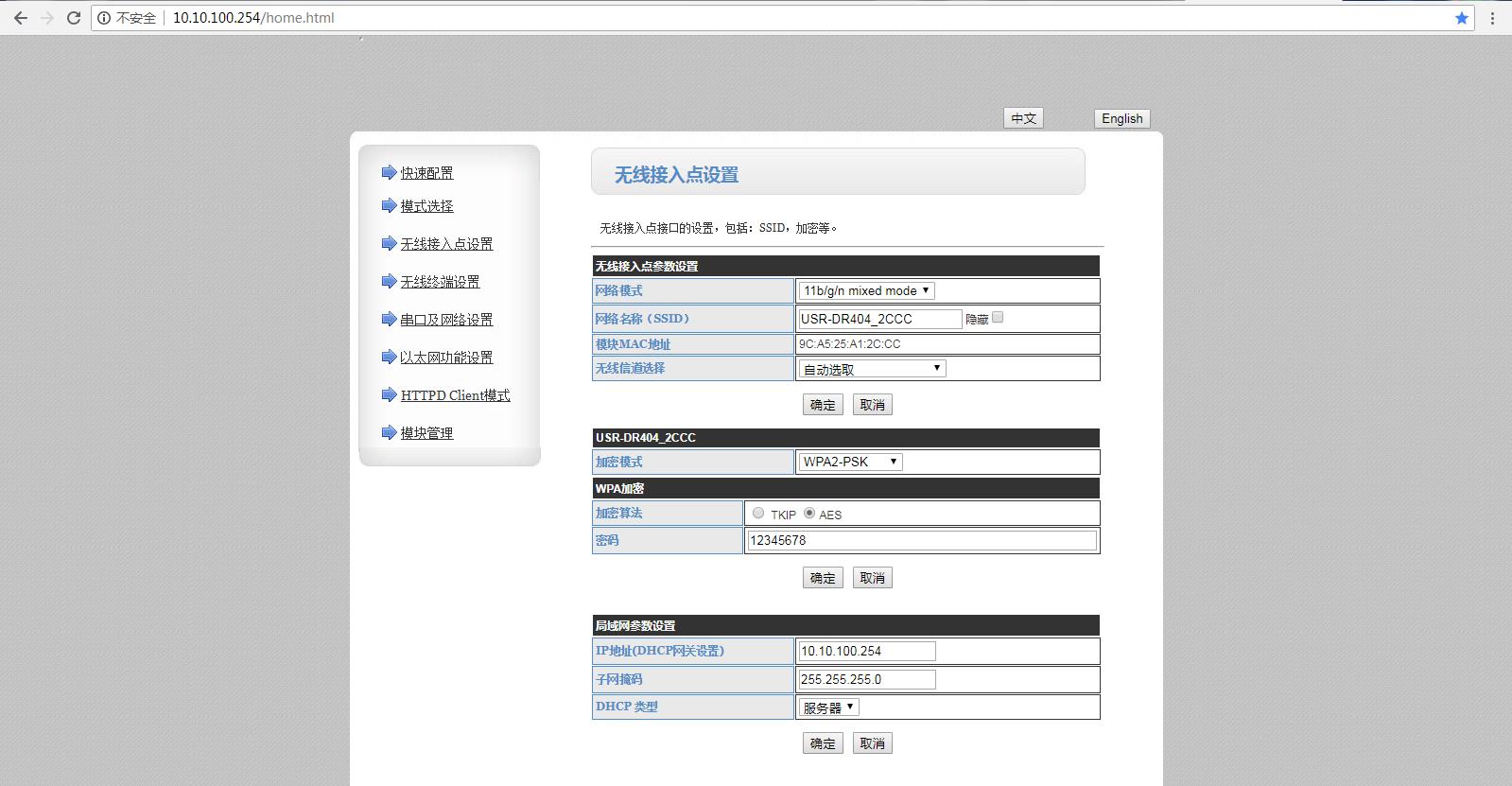 USR-DR404默認IP是10.10.100.254,用這個IP,在瀏覽器輸入,進入USR-DR404的內置網頁,可以對DR404進行參數(shù)查看和參數(shù)配置。登錄用戶名和密碼都是admin。