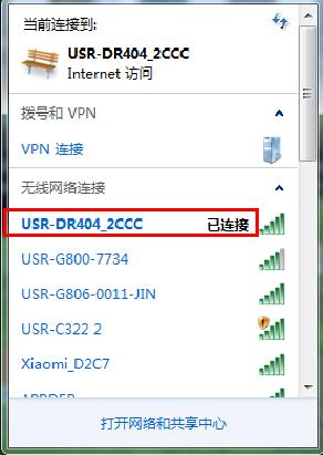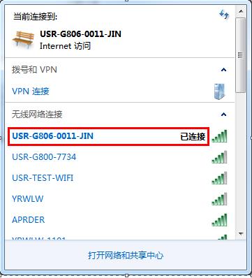 USR-DR404出廠默認(rèn)是AP模式,電腦無線網(wǎng)卡去搜索USR-DR404的wifi。