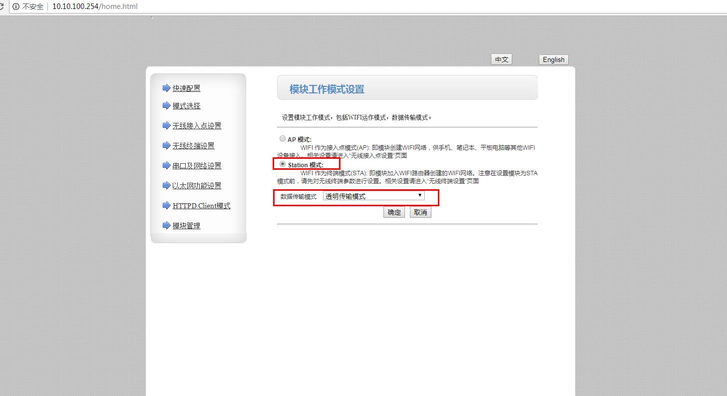 在網(wǎng)頁上將工作模式從AP模式改為STA模式,保存參數(shù)。