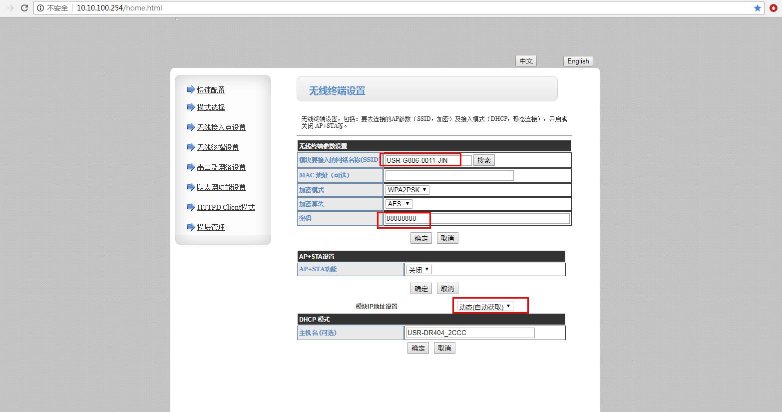 5、配置STA模式參數(shù):