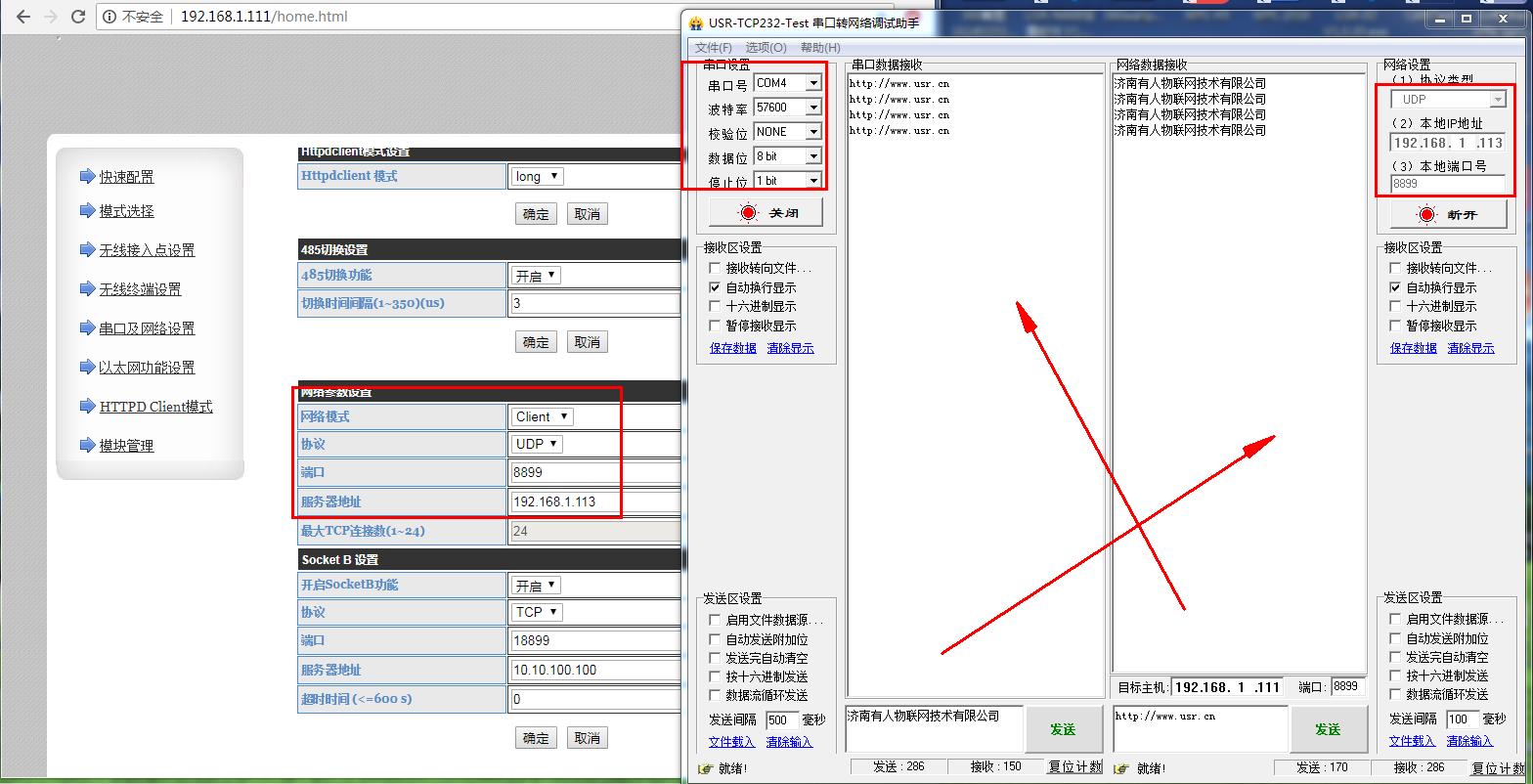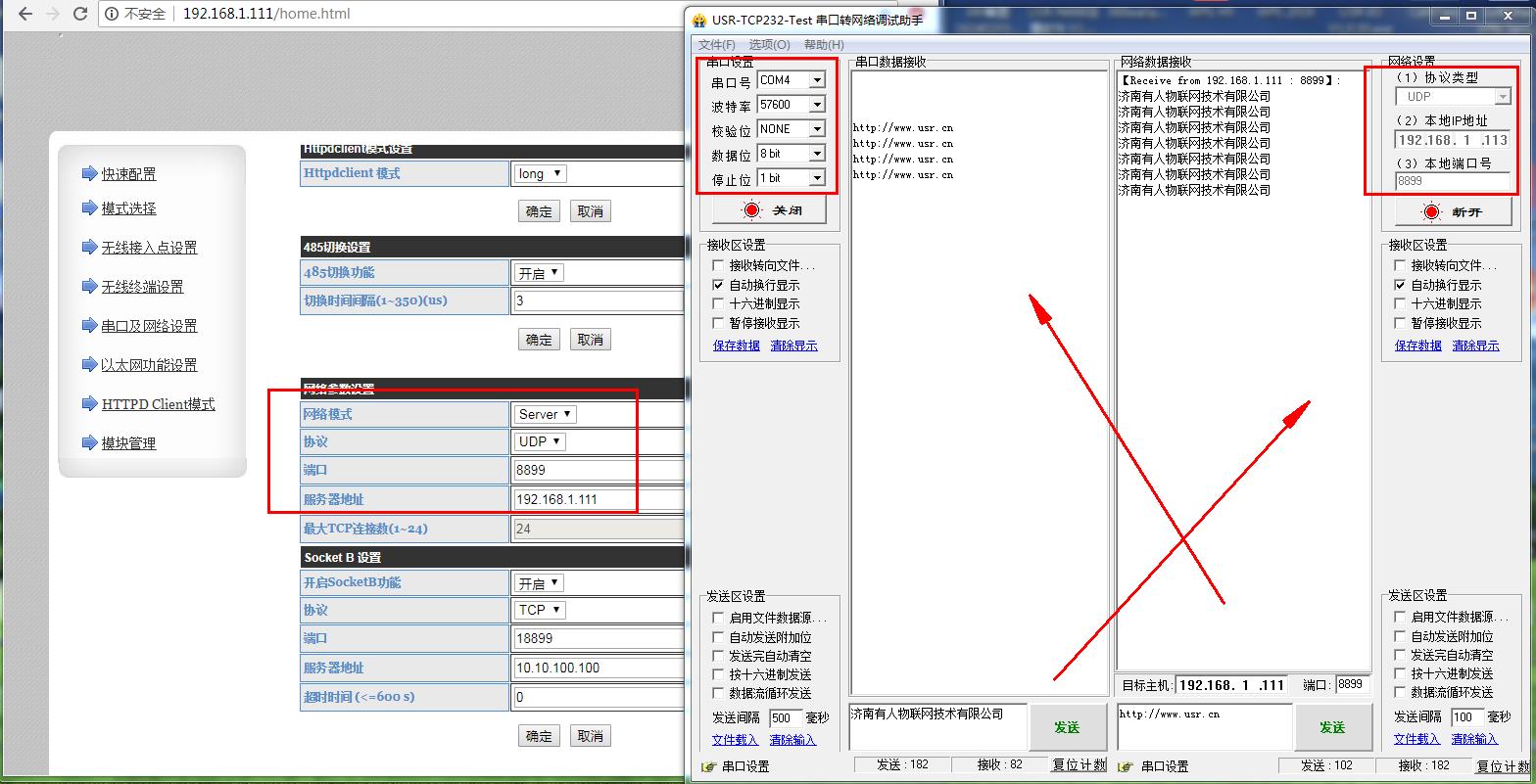 注意:485是半雙工,不能雙向同時(shí)發(fā)數(shù)據(jù)。UDP網(wǎng)絡(luò)先給串口發(fā)數(shù)據(jù),串口再給網(wǎng)絡(luò)發(fā)數(shù)據(jù)。