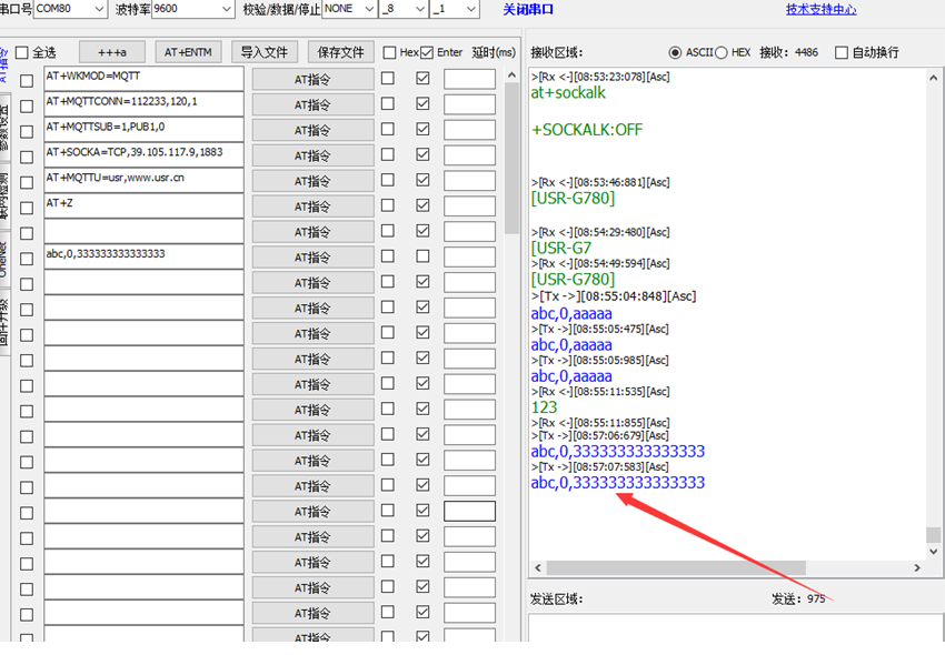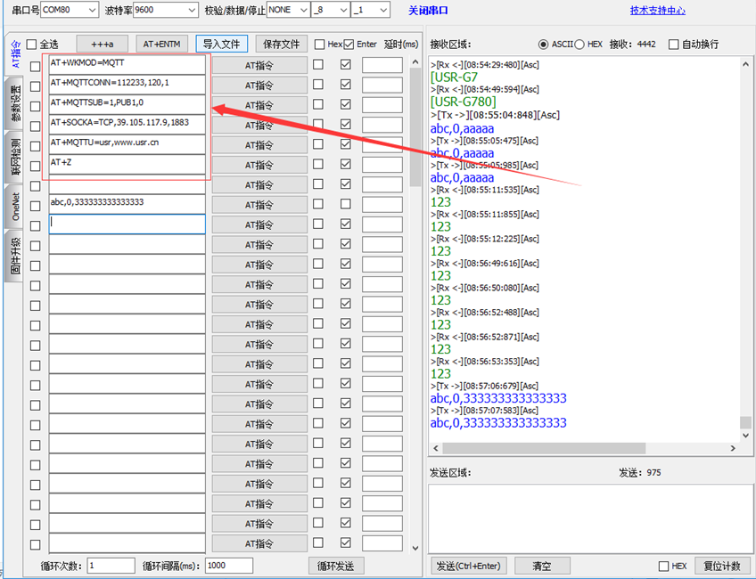 AT+SOCKA=TCP,39.105.117.9,1883 //mqtt服務器端口和地址