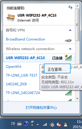 1:模塊默認(rèn)為AP模式下,在電腦上搜索HF-A11xAP的SSID。電腦連接上模塊的SSID。