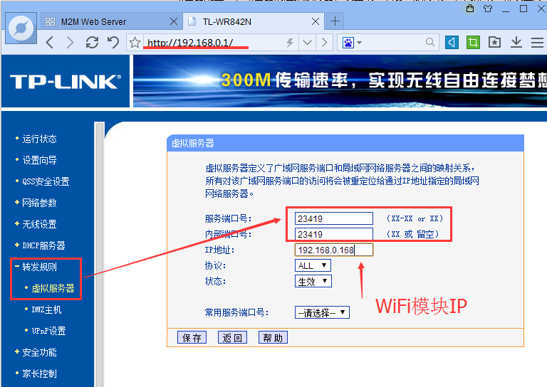 6:路由器配置:在路由器的虛擬服務(wù)器,設(shè)置端口映射。服務(wù)端口和內(nèi)部端口都設(shè)置為23419