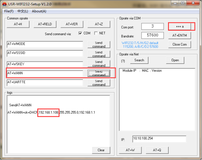 3、串口發(fā)送AT指令獲取模塊IP。