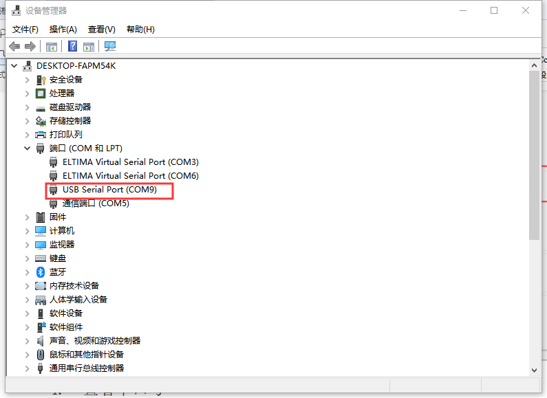 在設(shè)備管理器中查看端口信息,確定302串口使用的串口號,如下圖所示電腦端口號為COM9