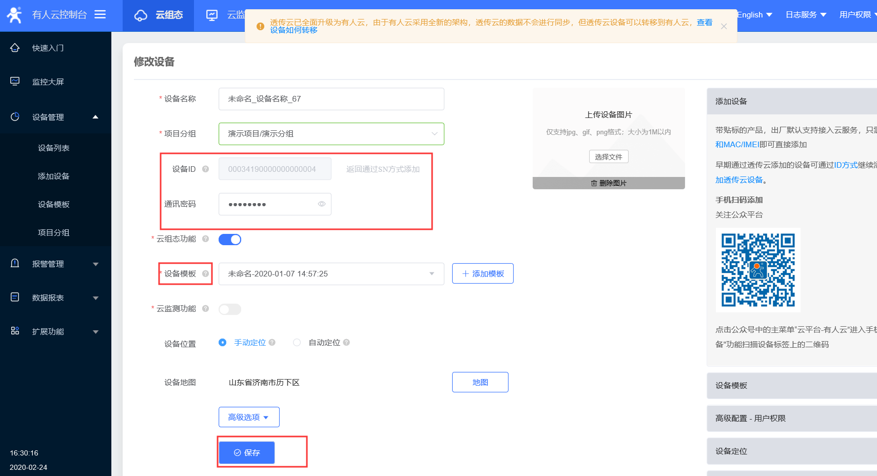 7.完成設(shè)置后回到有人云,即可看到設(shè)備上線成功。