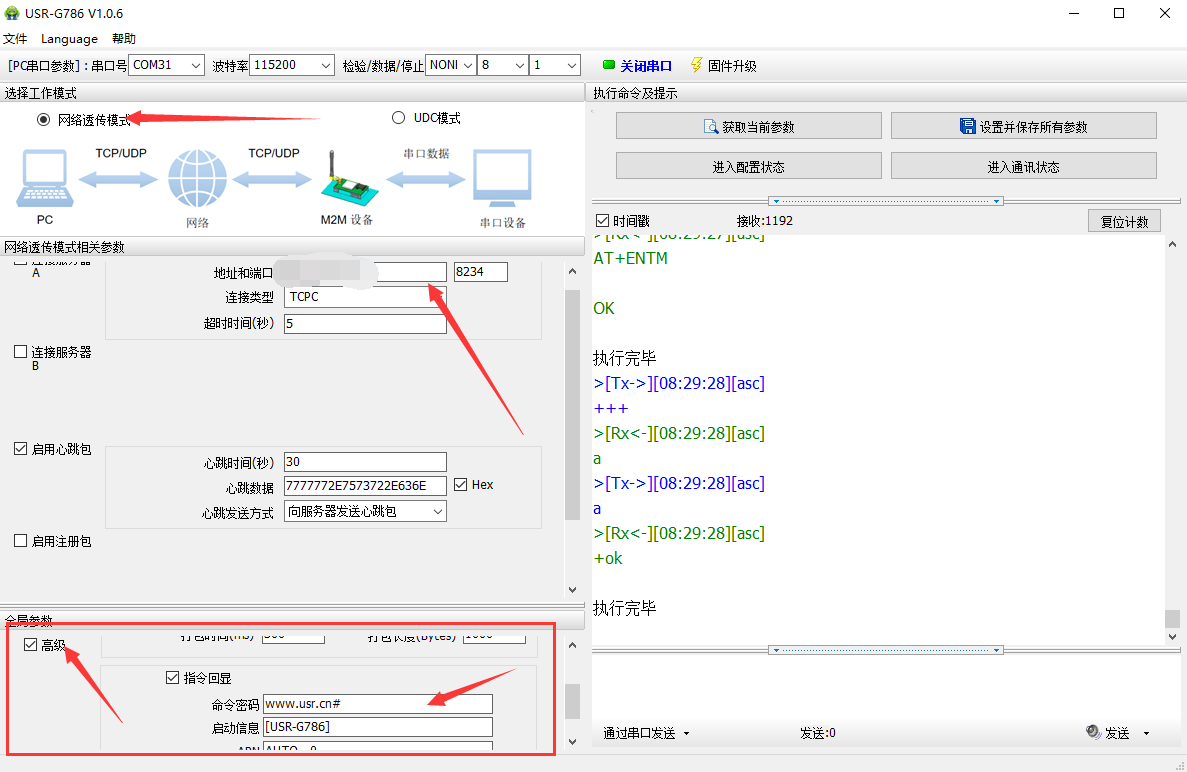 注意:修改的參數(shù)都需要重啟后才能生效,所以最后發(fā)送命令密碼AT+Z重啟DTU