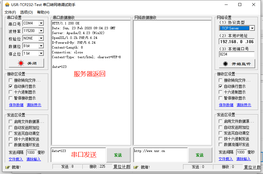 HTTPD_Client主要應(yīng)用于網(wǎng)頁服務(wù)器,串口服務(wù)器發(fā)送的數(shù)據(jù),可以透傳到網(wǎng)頁服務(wù)器接收。網(wǎng)頁服務(wù)器返回數(shù)據(jù)給串口服務(wù)器的串口。用于監(jiān)控串口設(shè)備。