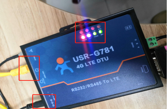 5. 上電后,指示燈情況:PWR常亮,WORK燈閃亮,NET燈2G紅色、3G藍(lán)色、4G紫色,SIM燈亮(插入有效SIM亮,未插入或SIM卡無效不亮)