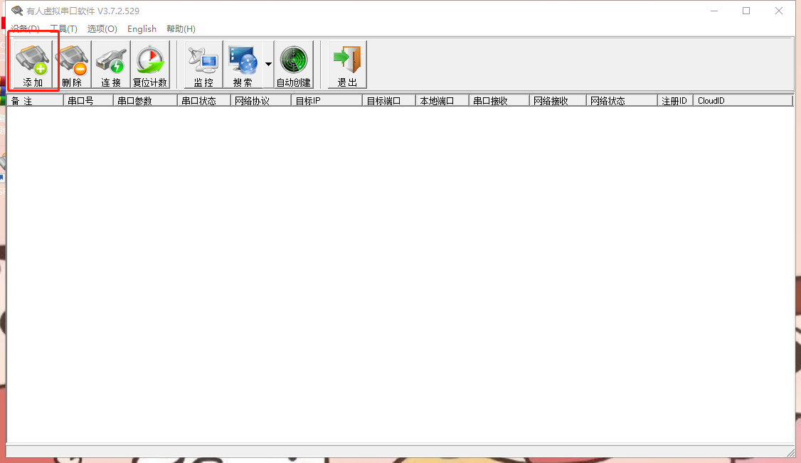 1、下載并安裝虛擬串口軟件,點(diǎn)擊右上角的添加按鈕
