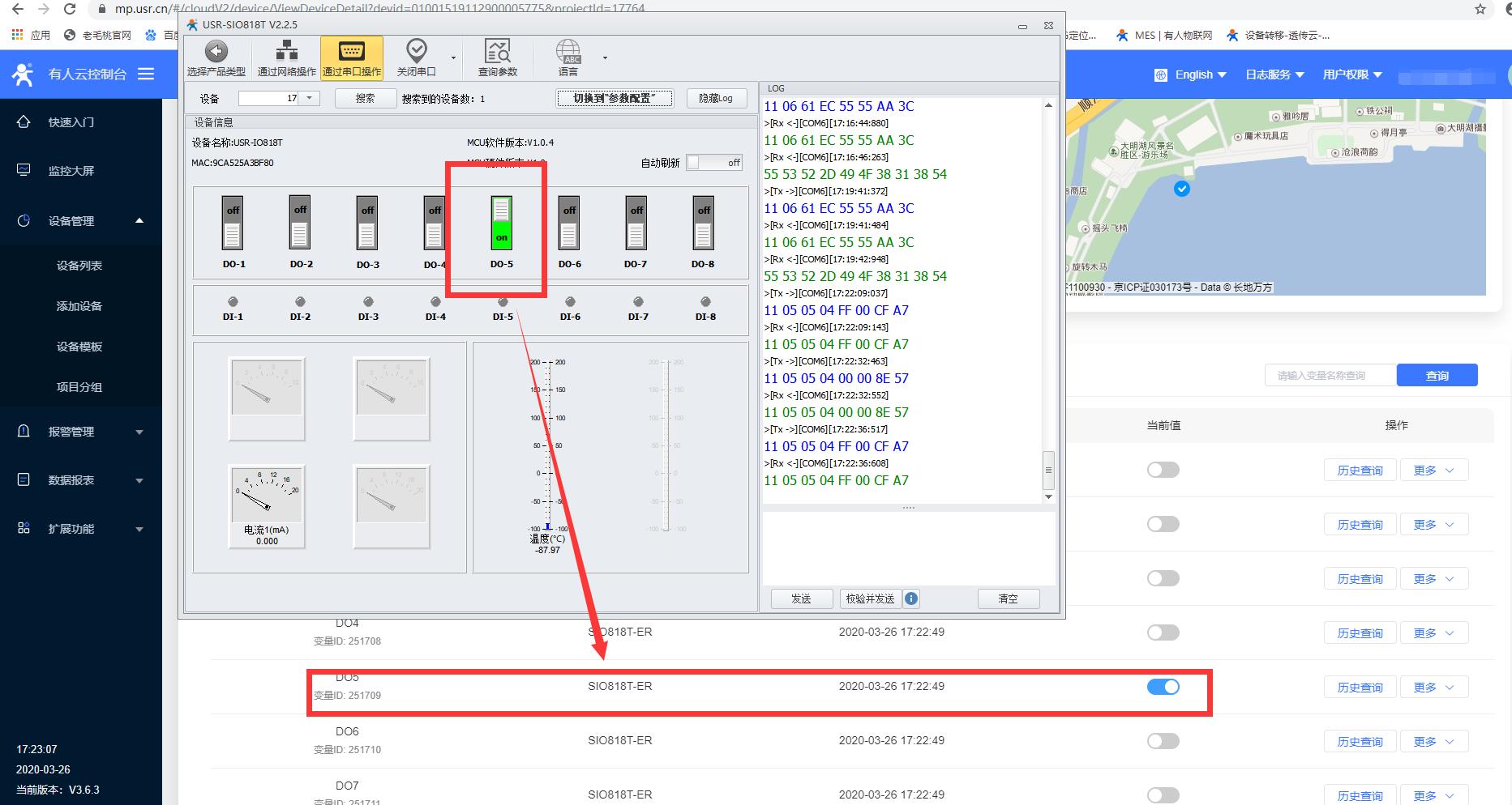 在設(shè)置軟件上改變do5的狀態(tài),云平臺獲取到正確數(shù)據(jù)(此時設(shè)備應(yīng)打到run狀態(tài))